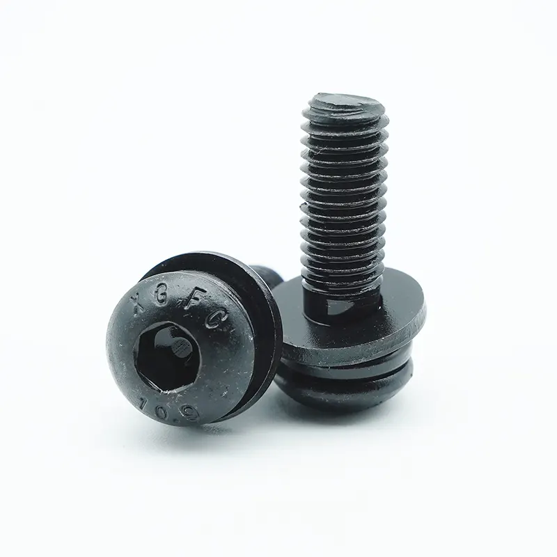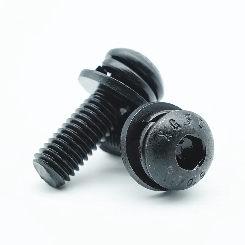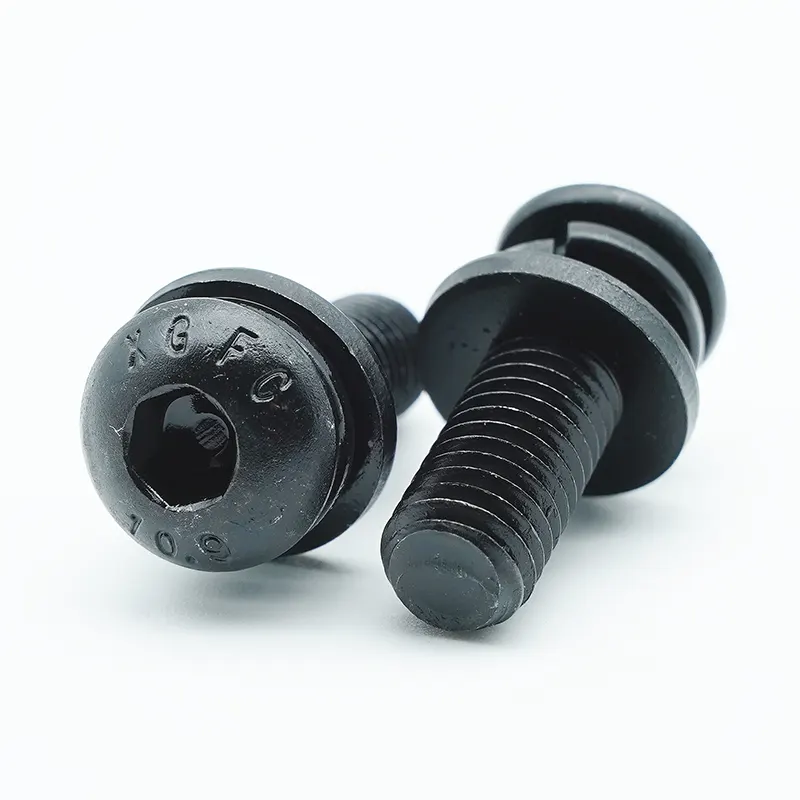 Slovenski Jinxi'nin Qara Oksid Hex Socket Düymə Baş Birləşmə vintləri, vintlər, düz yuyucular və bahar yuyucuları ilə fabrik yığılmışdır. Vintlər əsas bərkidici qüvvəni təmin edir, düz yuyucular bağlayıcı və bahar yuyucularının səthi arasında yerləşir və bahar yuyucuları düz yuyucular və vida başları arasında yerləşir. Məclisdən sonra yuyucular çox yığma vaxtı və səyləri qənaət edərkən, nəqliyyat, saxlamaq və istifadə etmək, saxlamaq və istifadə etmək üçün asanlıqla vintlərdən düşməzlər.