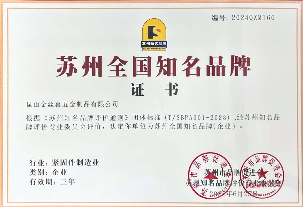 KunşanJinxiMetalware Co, Ltd., əla məhsul keyfiyyəti, aparıcı texnoloji güc, hərtərəfli xidmət sistemi və geniş bazar təsiri üçün "Suzhou-da Milli Məşhur Brend" başlığına rəsmi olaraq mükafatlandırıldı!