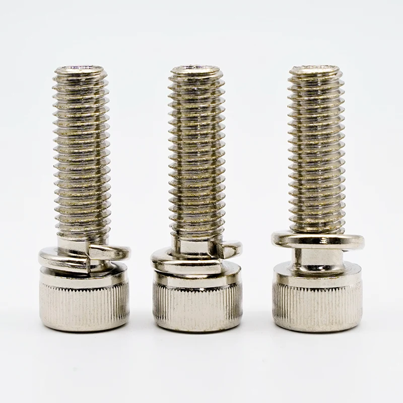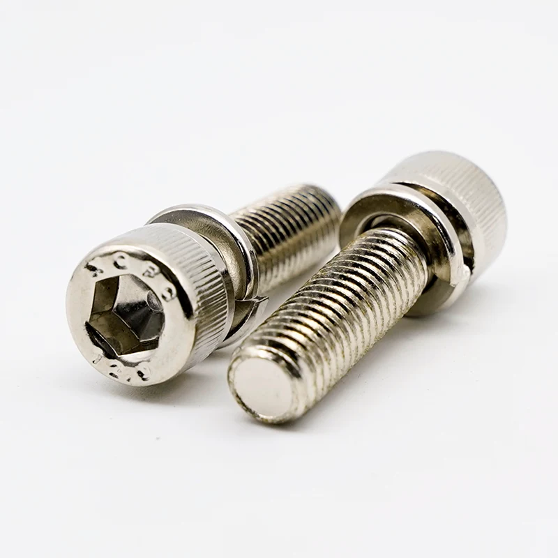 Slovenski Jinxi'nin nikel örtüklü hex yuvası baş örtüklü vintlər, bir Din 912 yuvası baş örtüyü vida ilə əvvəlcədən yığılmış bir bahar yuyucusu ilə birləşdirin. Bahar yuyucusunun əsas funksiyası, titrəmənin səbəb olduğu gevşetmənin dayanmasına müqavimət göstərdikdən sonra davamlı sürtünmə qüvvəsi təmin etməkdir. Bu, dinamik yüklər və ya istilik genişlənməsi və daralma şəraitində adi düz yuyucu vintlərdən daha yaxşı çıxış edir.